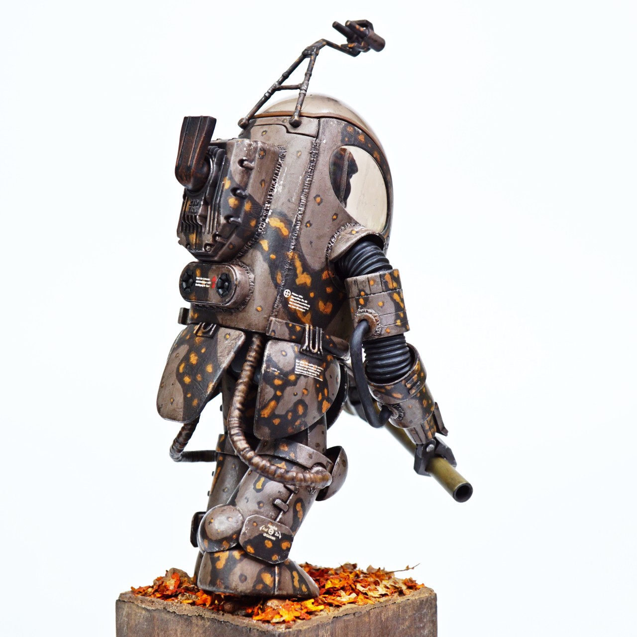 조립은 매뉴얼대로 조립을 하였고 약간의 3D, 옵션 파츠와 용접 라인을 넣어 디테일을 추가했습니다. 도색은 늘 그렇듯 아크릴 도료 기반의 붓 도색이고 평소 해보고 싶었던 가을 위장 무늬를 넣어보았습니다.