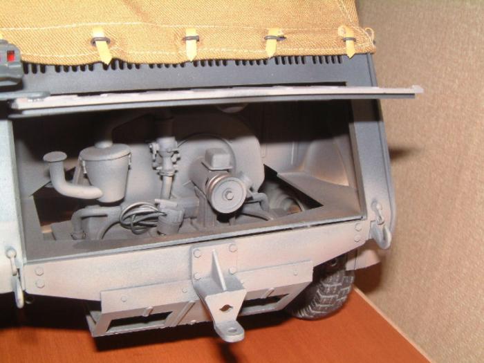 연료 주입구도 개폐식으로, 내부의 연료탱크와 파이프로 연결되어 있습니다.연결끈은 실물가죽입니다. 아! 그리고 이 부분에 스위치가 있습니다...바로 예비타이어! 오른쪽으로 돌리면 점등,왼쪽은 시동^^재밌겠지요?