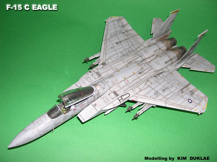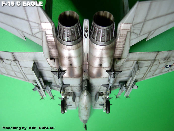 해외나 국내에서 제가 본 본 기체의 완성품들은 다 깨끗한 작품들이 많았는데 요즘 보게된 여러 가지의 실기 사진을 보고 웨더링과 전체적으로 리벳을 표현하는데 작업시간이 든 것 같습니다. 무장으로 장착한 미사일들의 색 띠들은 세필을 사용 그려준 것으로 노란색은 험브롤 에나멜이 선명하게 잘 그려지므로 밑 색도 잘 안 비춰나고 해서 많이 사용합니다.