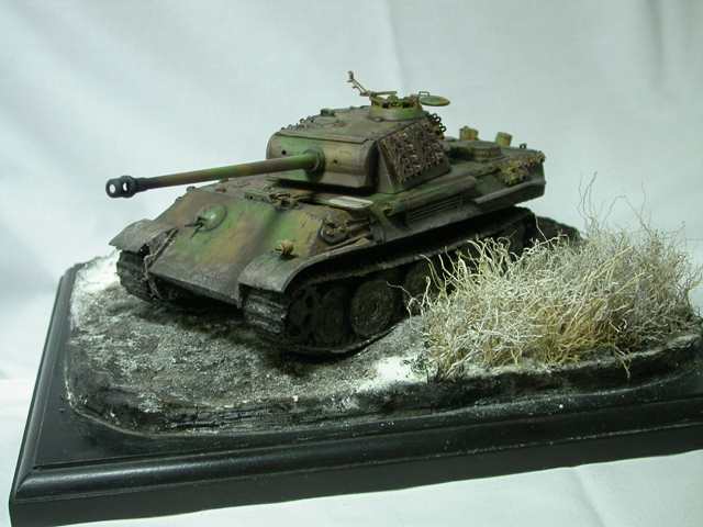 을 만들고 싶었습니다. 탱크는 동계위장으로 할까 고민하다가 자칫 망칠까 두려워 그냥 도색만하기로 했습니다. 베이스는 지점토를 기본으로 모래, 톱밥등을 뿌려 만들었고 옆에 수풀은 동네주변에 잡초를 뽑아 그뿌리를 말린다음 적당한 크기로 잘라 사용했습니다. 베이스는 약간 젖은듯한 느낌을 살리기위해 어두운톤으로 칠했고 눈을 베이킹 파우더를 뿌려준후 픽사티브를 뿌려주었습니다.