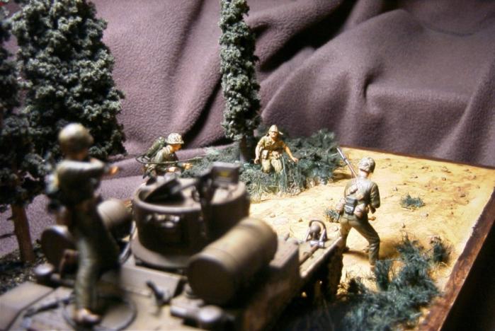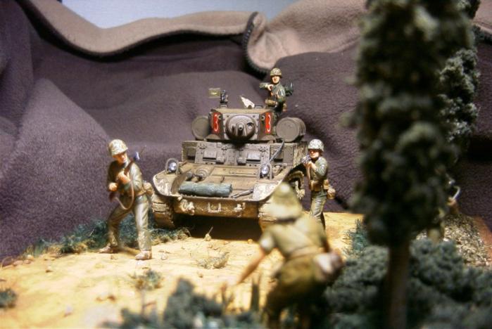 등장키트는 M3A1 스튜어트 전차는 지난 번 갤러리에 올렸던 아카데미제구요 측면과 궤도에 진흙이 묻은 표현을 추가했습니다. 미해병대는 드래곤제, 일본군은 타미야제입니다. 별 수정이나 변경 없이 키트 그대로의 자세입니다.(실력이 안됩니다. T T)