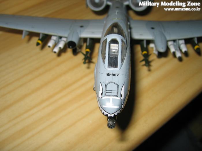 디테일은 둘째치더라도 우선은 무장이 많아서 제법 A-10처럼 보이는 군요. 무장부분에 노란띠를 마스킹하느라고 애먹었습니다.