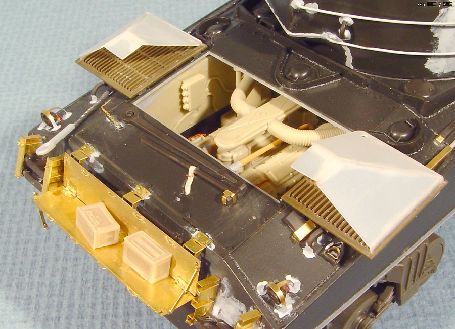 1/35 타미야 M4A3 전선돌파 키트, 밸린던 엔진 별매품, Taska제 별매 VVSS를 사용했습니다.