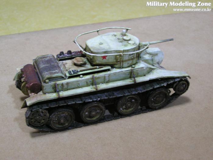 홍콩출장갔을때 모형점에 들러서 구입한 놈입니다. 홍콩에서는 드래곤제품이 우리나라판매가에 50~70%정도밖에 되지 않아 공항까지 들고올 수 있을만큼 사왔지요. 드래곤외에도 동구권메이커들도 많이 있었는데 그만 호기심이 발동하여 러시아제(즈베즈다)를 구입하여 제작에 돌입!, 모양이 맘에들고 예전에 "Talsovita"(겨울전쟁)라는 핀란드와 소련간의 전쟁을 다룬 영화에서 본 기억이 나서 들뜬마음으로 작업에 착수했건만 조립성이 워낙 엉망이라 악전고투끝에 완성했습니다. 특히 반연결식 궤도가 너무 엉망이라 웨더링을 심하게 해서 감추었습니다.:).. 다신 러시아제는 사지 않겠다는....