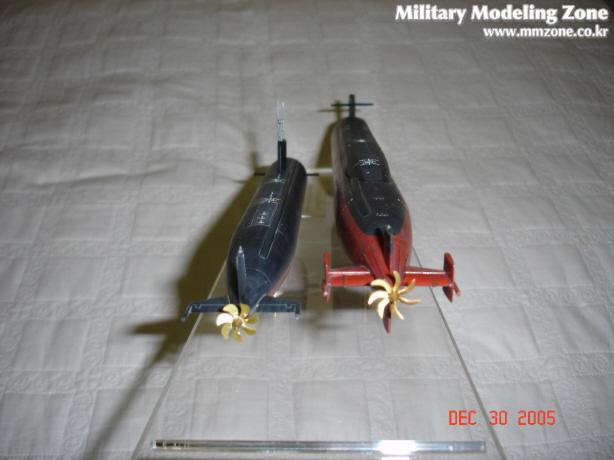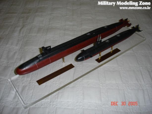 드래곤에서 발매한 1/350 잠수함입니다. 큰것은 미해군 오하이오급 전략원잠이고 작은 것은 로스엔젤레스급 공격원잠입니다. 부품도 별로 없어 조립은 간단한데....선체조립에서 단차가 많이나서 퍼티작업이 많았습니다.