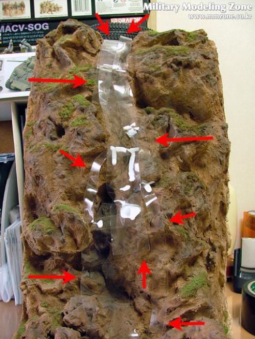 그 위에 쿠킹호일을 사용하여 세밀한 바위와 계곡을 묘사한뒤,