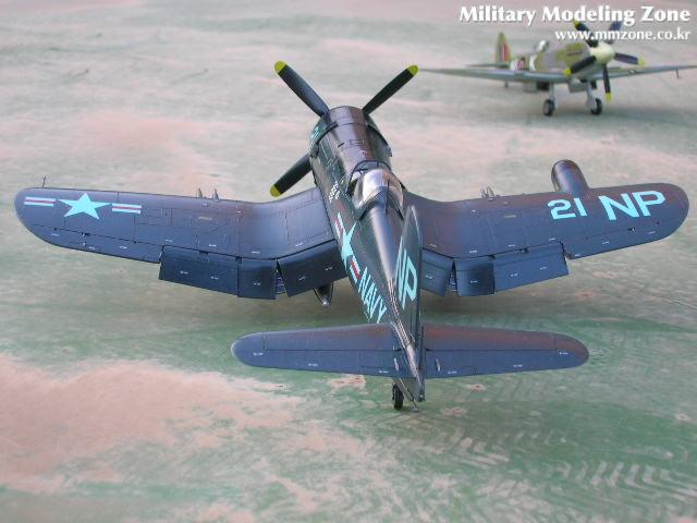 대전 말기부터 한국전까지 미 해군기의 표준도색으로 사용된 씨블루는 광이 번떡번떡하는 글로스 시 블루인데 단색이라 쉬울줄 알았는데 의외로 느낌내기가 어렵더군요.