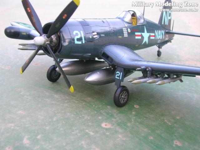 F4U-5형은 대전중 콜세어의 최종생산형으로 신형의 2300마력짜리 R-2800-32W엔진으로 환장한 뒤 756km의 속도를 발휘, F8F-2베어캣을 제치고 해군 최고속 레시프로 전투기로 등극합니다 ㅎㅎ 그중 F4U-5N형은 우측 날개에 레이더를 탑재하고 단좌 야간전투기로 맹활약했습니다.