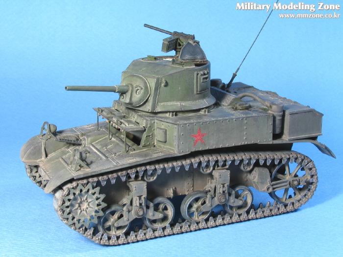 아카데미 스튜어트로 만든 소련공여형 모델입니다. 도색은 험브롤 ,'러시안 배틀필드'의 그림따라 붉은 별 두개만 붙였습니다.예전 안치홍님 홈의 제작례를 따라 리벳을 조금 수정하고, 포탑 전면부와 차체 중간등에 조금 손보았습니다.소련에 공여된 차량은 디젤사양인 듯 해서 타미야 스튜어트 조립예와 비교해서 런너 늘인 것으로 보완 햇습니다.