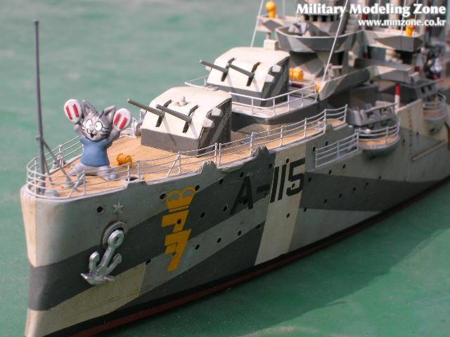 대략 이런 느낌. 이 모형은 철저한 재활용품으로 선체는 마퀴떼라는 괴 메이커의 순양함 오로라의 선체를 이용. 5인치 대공/대 수상 양용포와 보포스 40mm는 강남 미조리에서, 외 이것저것 예전에 만들다 남은 키트에서 이리저리 따다 만든 녀석이죠 핫핫.