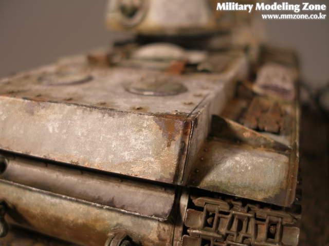 기본 도색위에 흰색에나멜 원액으로 평붓에 묻혀 붓질하듯이 드라이브러싱을 한후에 유화 로우엄버로 워싱, 그위에 아크릴 흰색을 스텐실 하듯이 반복적으로 두드려 표현을 해보았습니다