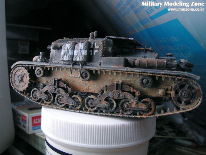 흙이 묻은 바닥면입니다. 차체 하부 중간은 어차피 안보일 것이기 때문에 칠을 안했습니다.