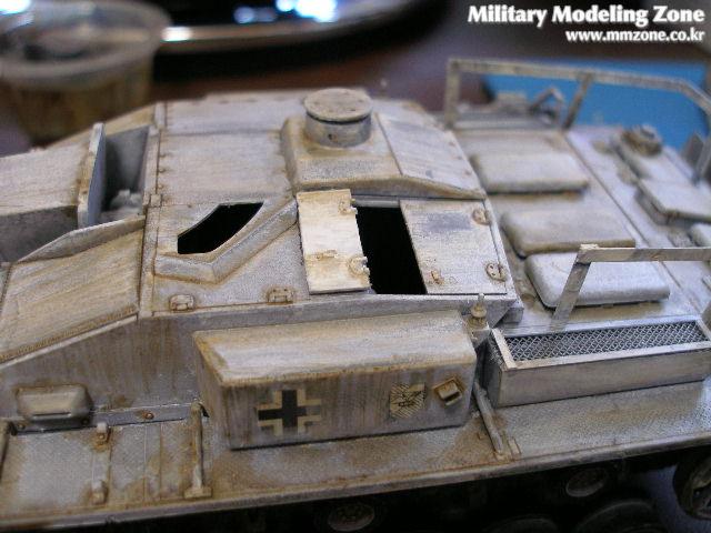 저먼그레이 기본도색후, 화이트로 동계위장을 엷게 워싱, 로우엄버로 부분부분 강조할때 사진입니다.