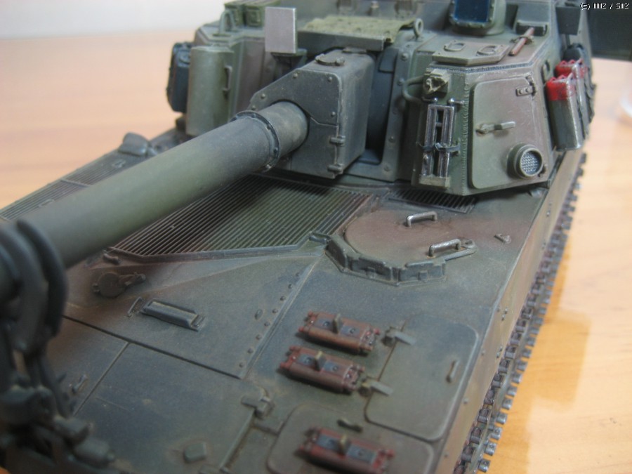 기본 도색 후에 모습입니다. 도색예가 측면만 있어서 상부 위장무늬가 많이 어색합니다. 실차사진약간 참고 했습니다.