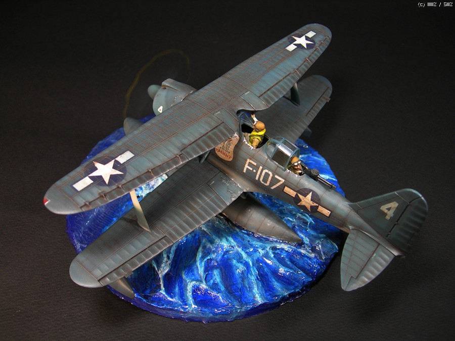 도색 전과 도색 후의 느낌이 상당히 판이함을 알게해 준 제품인데요...돌출된 리벳이며 캔퍼스질감 같은 형태의 동체 라인 때문이라도 살짝 드라이브러싱으로 간략하게 표현을 해보았습니다.조종사나 데칼은 다른 제품에서 유용을 하고 아무래도 수상기이기에 조그맣게나마 베이스와 함께 구상을 해보았는데....역시 물표현은 힘들다는..역동적인 모습을 보이고자 프로펠러를 인위적으로 돌려 보면서 촬영을 해 보았는데 모터라이즈는 아니구요..