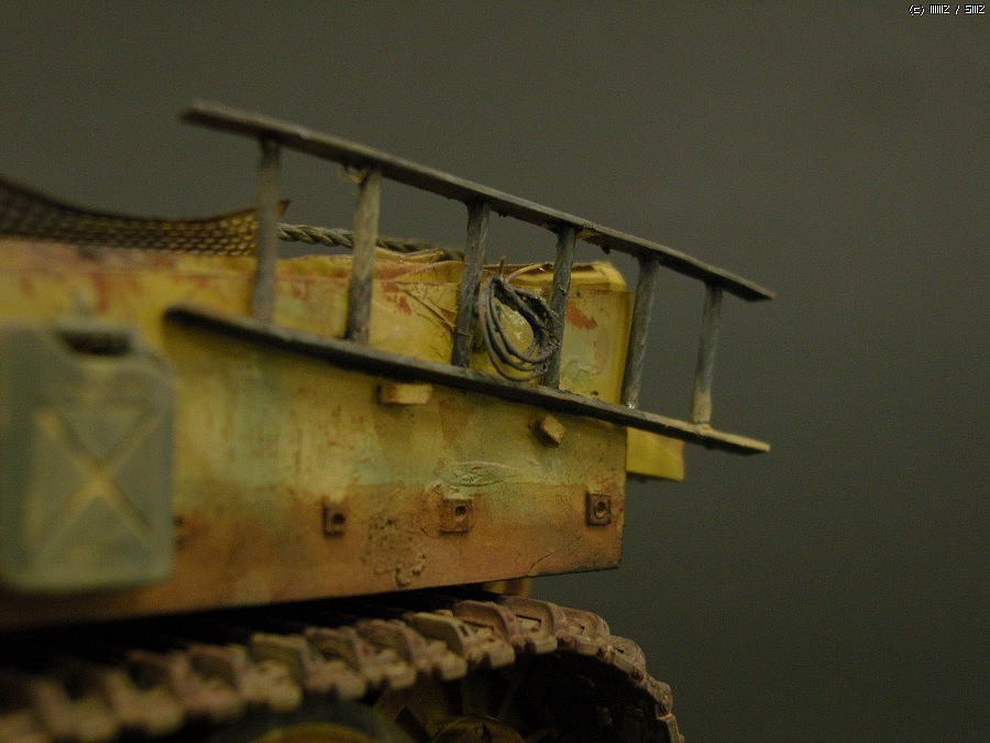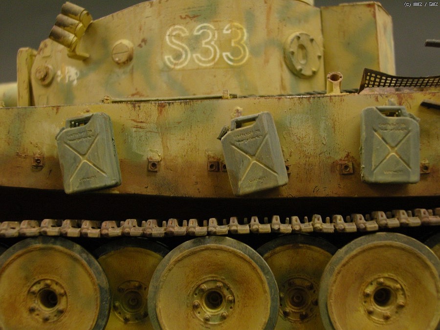 이번엔 클리어를 /조금 두텁게 올리고, 그 위에 녹 색깔로 드라이 브러싱 하는 식으로 낡고 거친 전차의 측면의 금속감을 표현해 보려 시도했습니다.