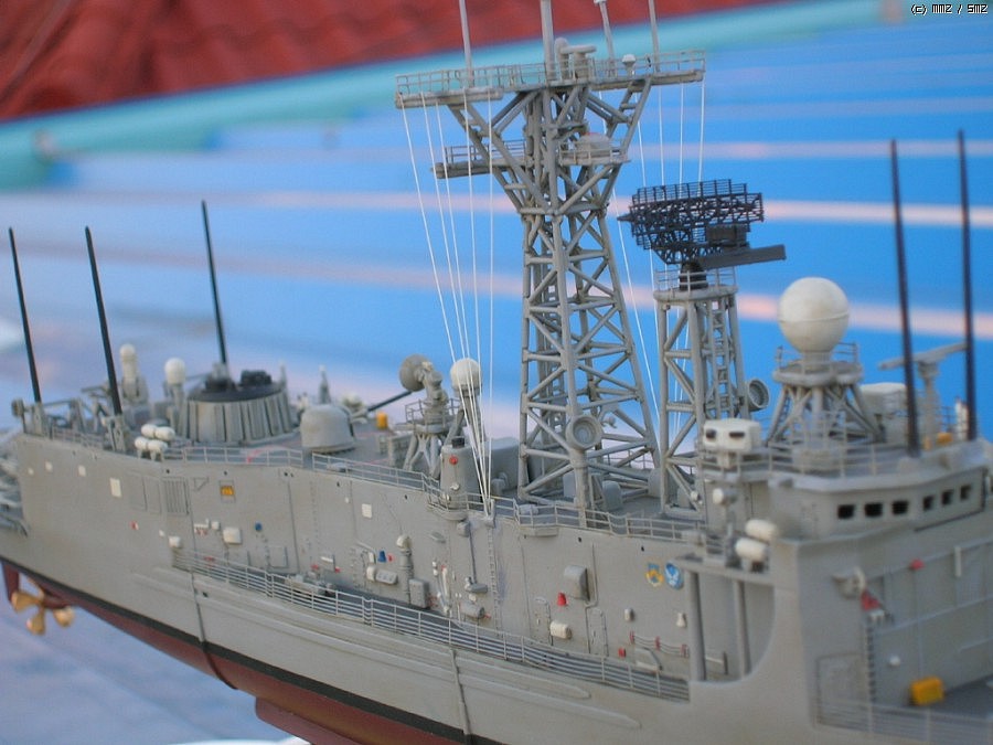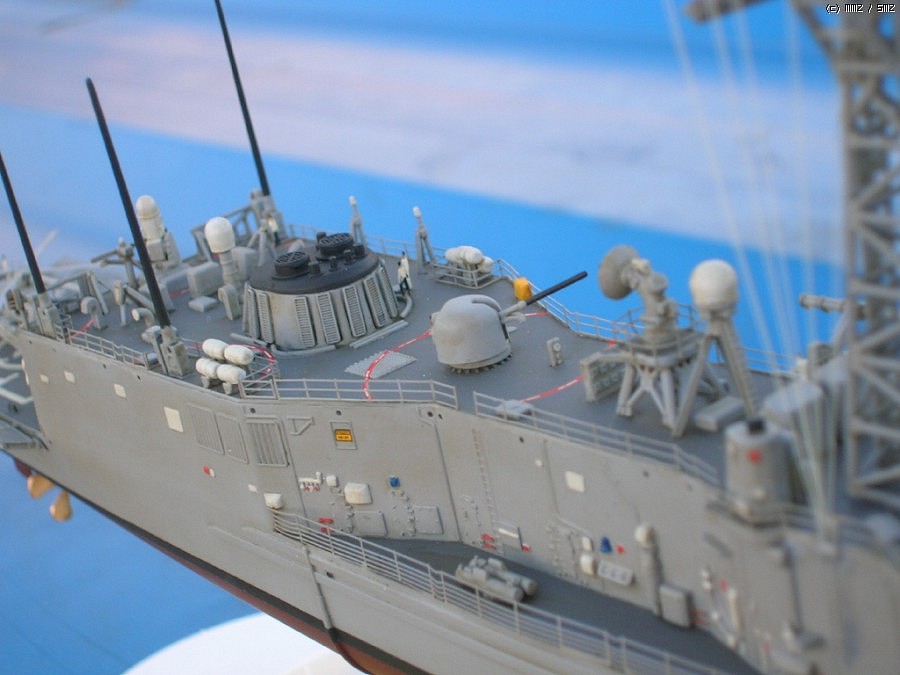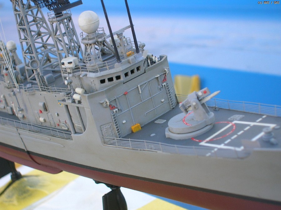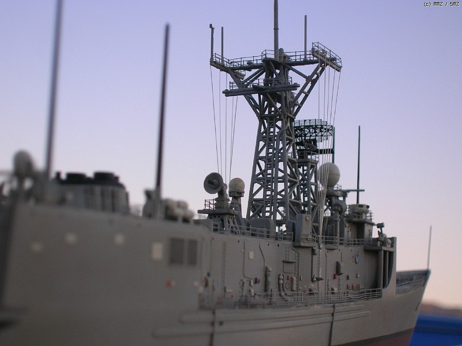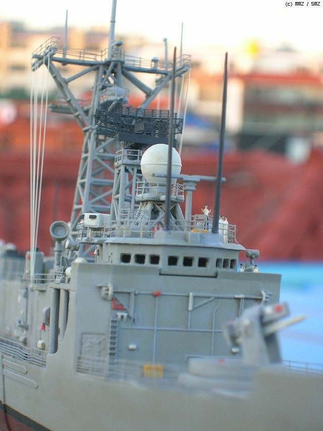 키트는 아카데미에서 발매된 올리버 해저드 페리급(FFG-7)을 약간 손봐서(파트가 키트에 들어 있습니다) 롱헐 타입의 후기형 루벤 제임스(FFG-57)로 만든 것인데 아무래도 난생 처음 만들어보는 미 현용함이라 이래 저래 미숙한 점이 많네요...^^; 아무래도 전 역시 대전함 체질인가 봅니다.ㅋ