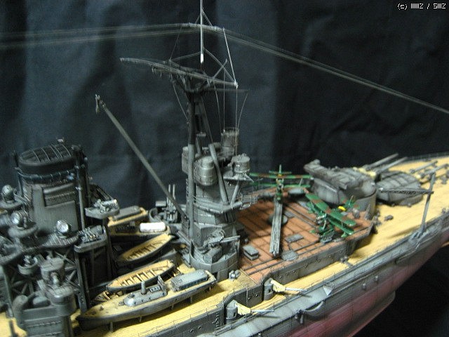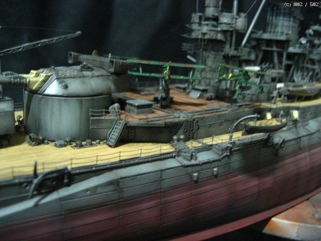 나가토급무츠(하세가와)이제서야 마무리졎습니다,도료는 군제컬러,험브럴을사용햇고 워싱은에나멜워싱을햇습니다,에칭은킷에포함된난간에칭외별매로 갑판용A 형을 사용햇고그외추가품은없습니다,