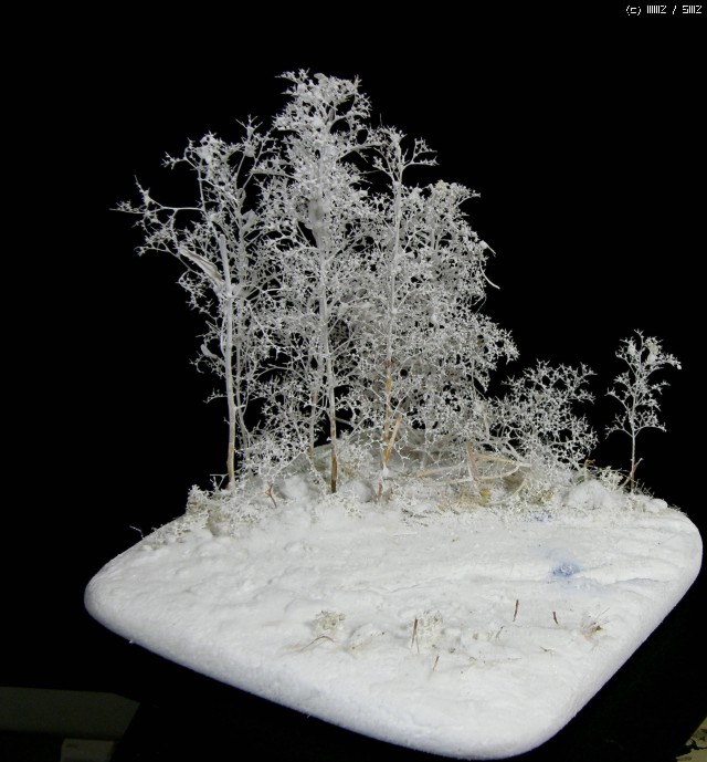 나무의 눈 표현은 흰색 스프레이로 뿌려 줬습니다. 바퀴자국 표현