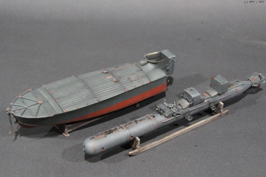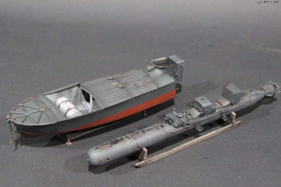 이렇듯 선수에 폭약드럼이 적재되어 있습니다. 자료집에 의하면 2차대전 이탈리아 해군에서 적함을 향해 키 고정 후 탈출하는 방식으로 운용했다 합니다...독일 해군용도 생산했다고 나와있네요...일단 자폭방식은 아니라서 좋군요..그래도 정확한 타격을 위해서는 자폭이...