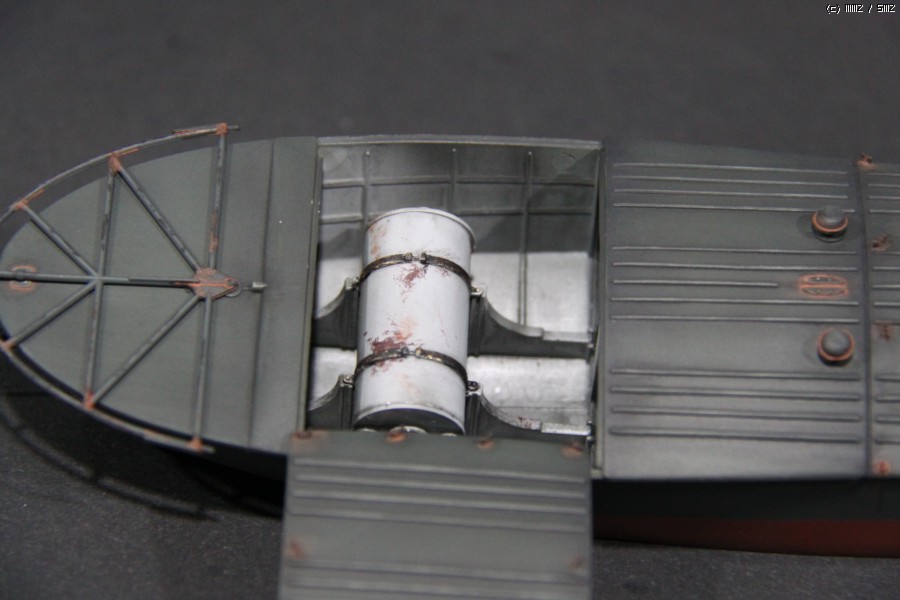 폭약드럼 벤드는 몰드성형입니다..자료직을 보고 검정 놋쇠 벤드의 검정칠이 까진 표현을 해 주었는데..마치 에칭벤드 대충 검정칠해 놓은 형상입니다..ㅋ