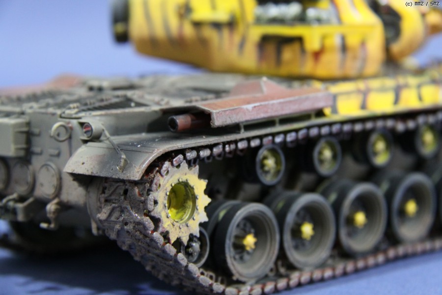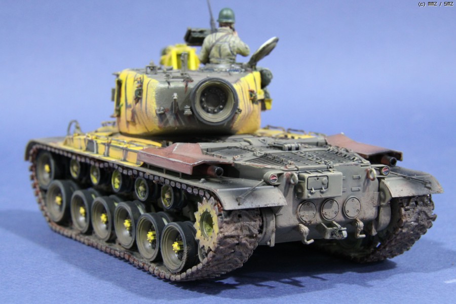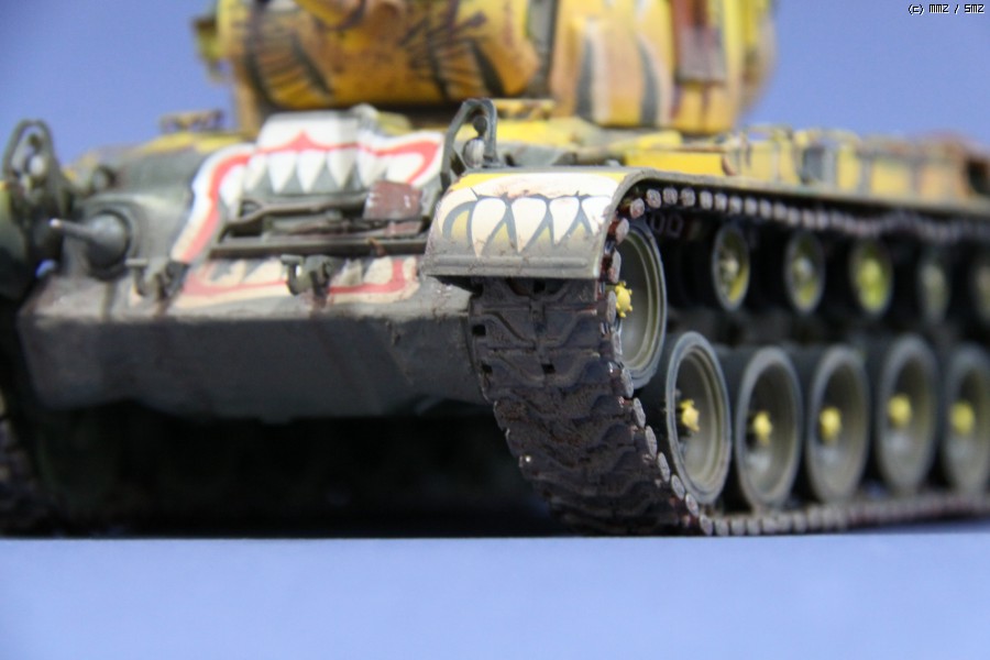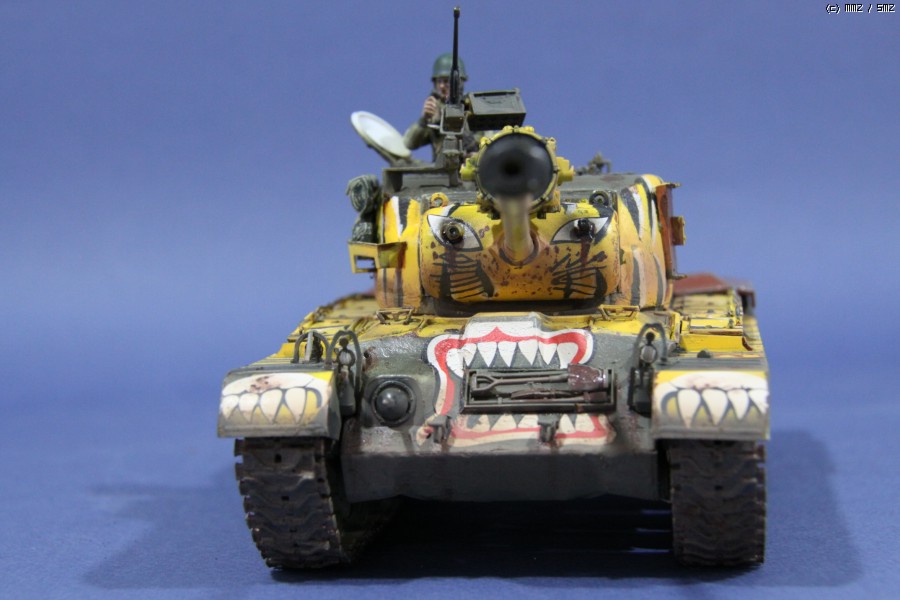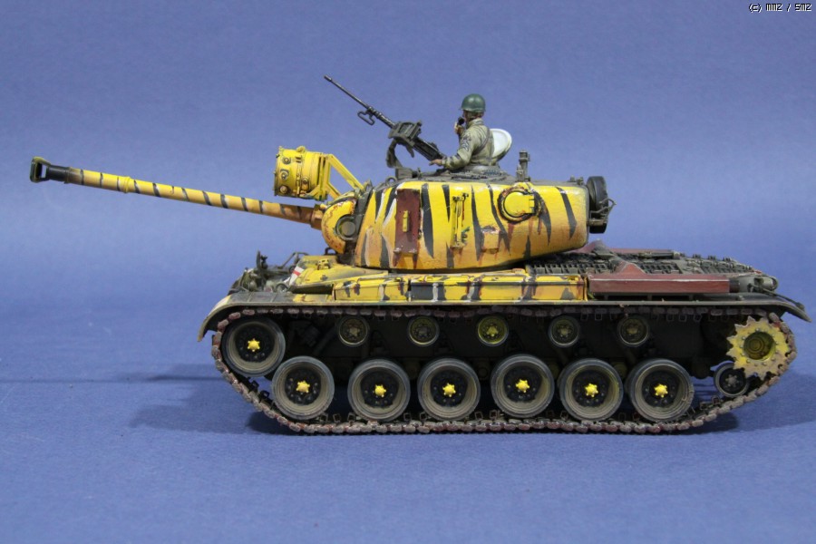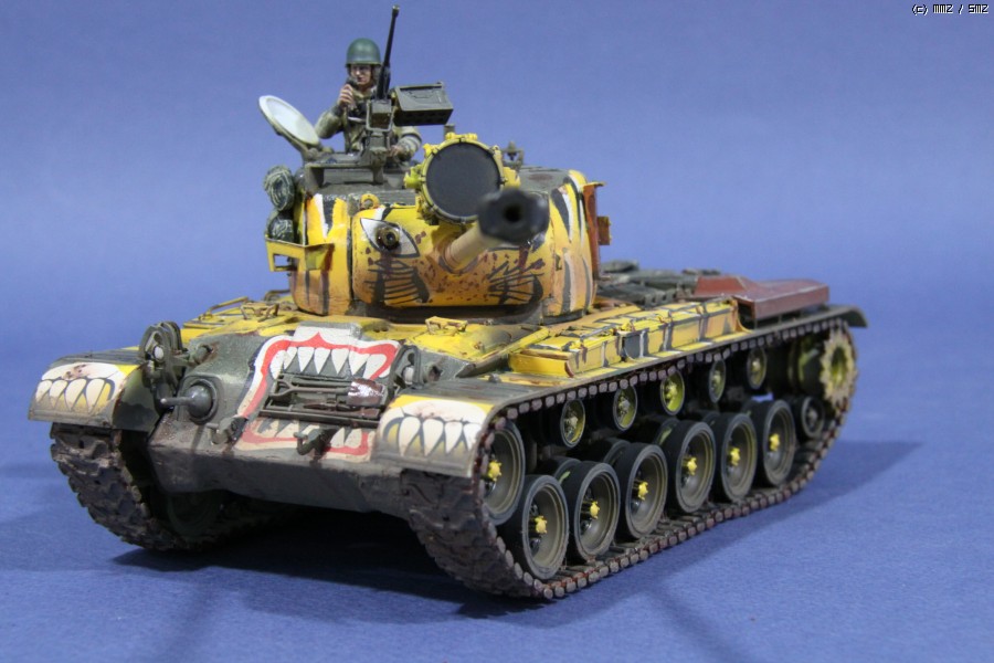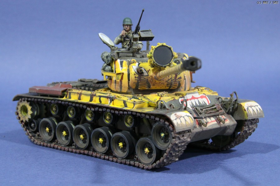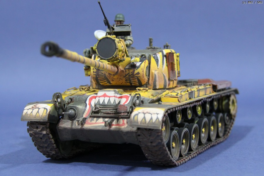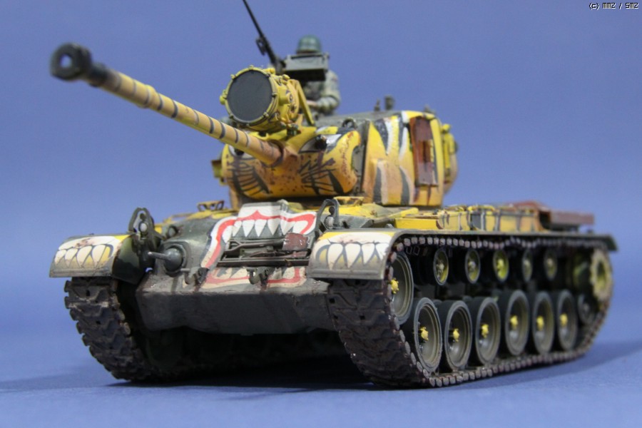 포탑의 강렬한 노란색의 타이거 무늬가 인상적인 마킹으로 마스킹 작업으로 일일히 그려주었습니다. 붓으로 해도 될걸 괜한짓 했나 싶습니다. 참고로 M46 패튼전차도 한국전에 투입되어 공산군의 전차들을 잡는데 큰 일조를 했습니다.