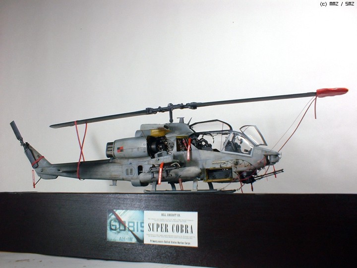 제식명 AH-1w 슈퍼 코브라, 제식코드 W 로 인해 위스키 코브라 라고도 불림. 이 모델은 미 해병대 경 공격헬기 비행 167 대 (Marine Light Helicopter Attack Team (HMLA-167)) 워리어스 비행대로 뉴 리버에 주둔하며 경항모, 강습상륙함 Battan 에 실려다니면서 걸프전,이라크전 그리고 각종 해상작전을 수행하는 공격헬기 대대 소속기체 입니다.