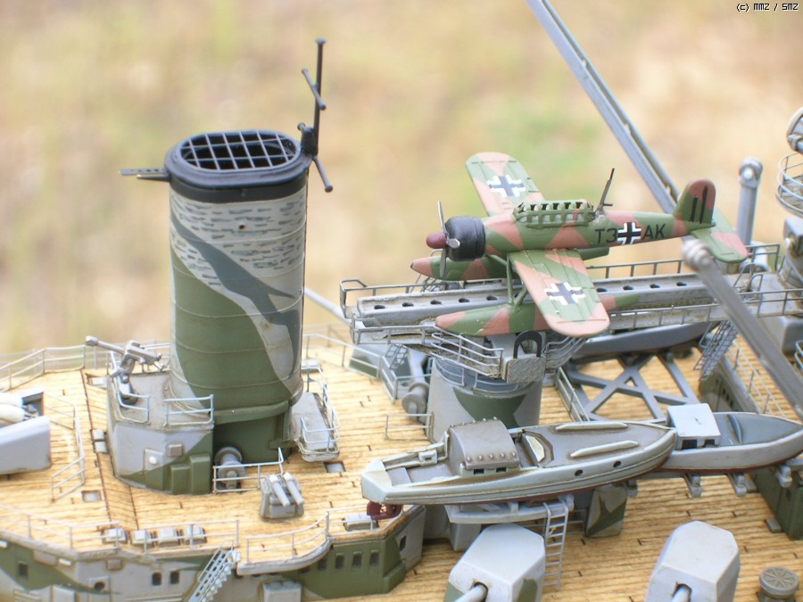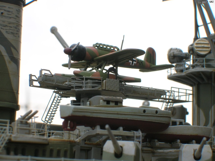 함 우현측 실루엣. 위장전함의 특징적인 형태를 잘 볼 수 있습니다. 함교전방 구조물 위에 장비된 위장 포탑과 캐터펄트 뒤에 장비된 위장 연돌이 위장미채와 합쳐져(;;;) 본래 포켓전함의 실루엣을 많이 바꿔놓고 있습니다.
