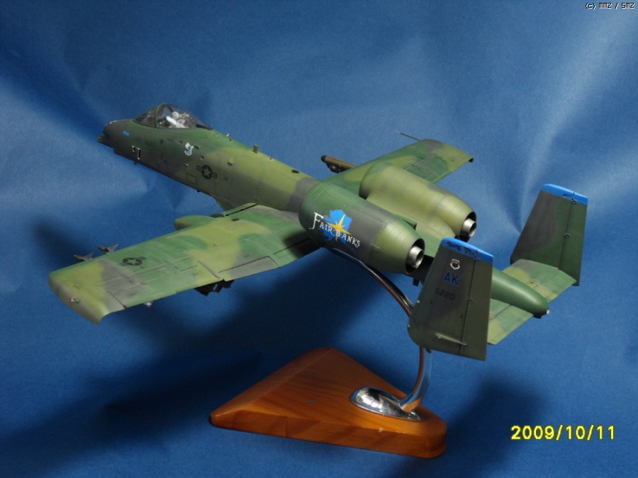 이번에도 비행상태로 만들었습니다. 키트의 조립성은 상당히 양호하지만 몇몇 부품이 형태가 어색하거나 잘못되어 보다 정확해보이는 모노그램A-10부품을 사용하였습니다. 도색은 군제301. 302. 303 특색이며 데칼은 투밥스의 Sprit of Fairbanks입니다. 80년대의 차콜리져드 도장으로 저시인성이 극대화된 도장인데도 특이하게 큼지막한 원색마크가 있어 마음에 듭니다.