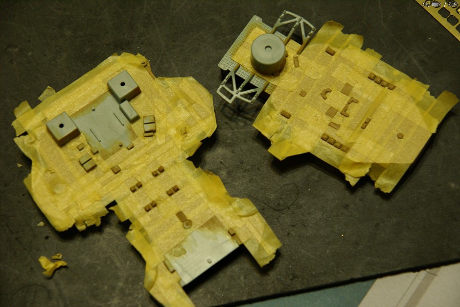 마스트 2곳의 디테일업 상태입니다. 특히나 굴뚝부 마스트의 지지대 부분이 독특한데 키트에는 그냥 민짜로 되어 있어서 아쉬운 부분이지요.