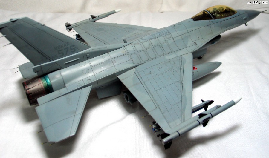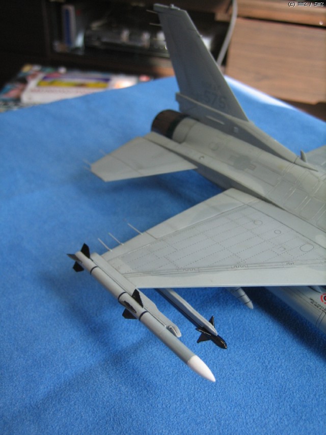 한국군 사양을 만들어 보고자 대지작업에 의한 제공미채 도색에, 주익 끝단 암람 미사일 완전자작까지 나름 공을 들였던 놈이었죠.