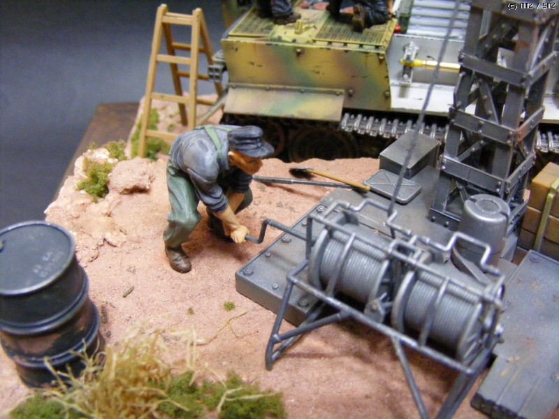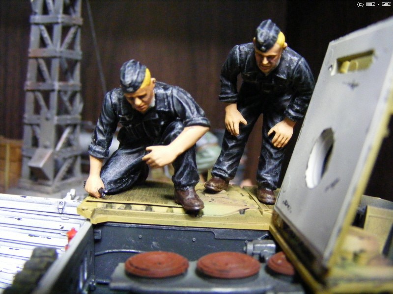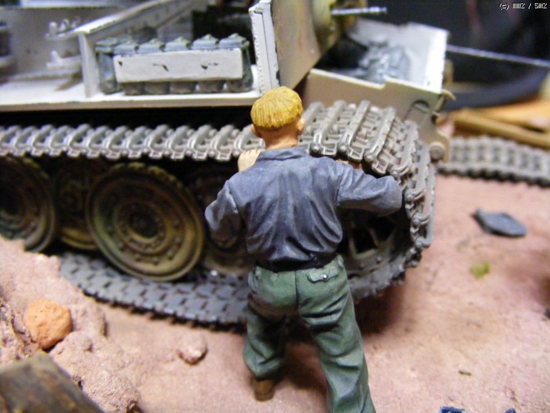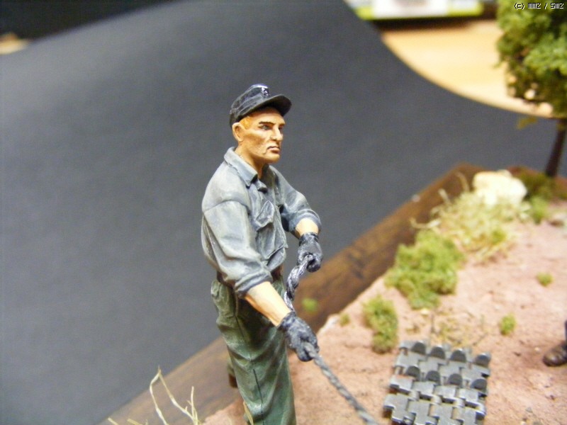 - 인형 : 미니아트의 전차수리병 세트와 타미야 전차수리병 세트를 사용하였는데 전체적으로 인형 동세와 얼굴 표정은 확실히 미니아트가 한수 위입니다. 특히 인형의 얼굴을 잘 칠하려면 원형