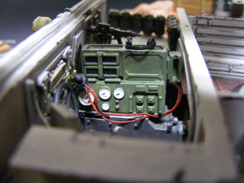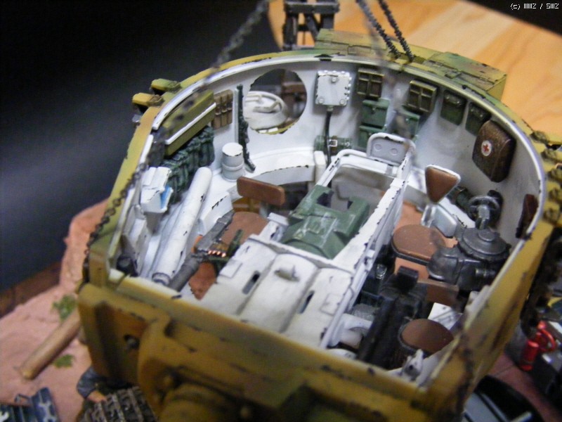 - 전차 : AFV에서 나온 타이거 후기형을 기본으로 아카제 내부재현 부품을 사용하였는데 비교적 잘 맞더군요. 전차상판을 덮으려다 내부 재현의 특징을 실리기 위하여