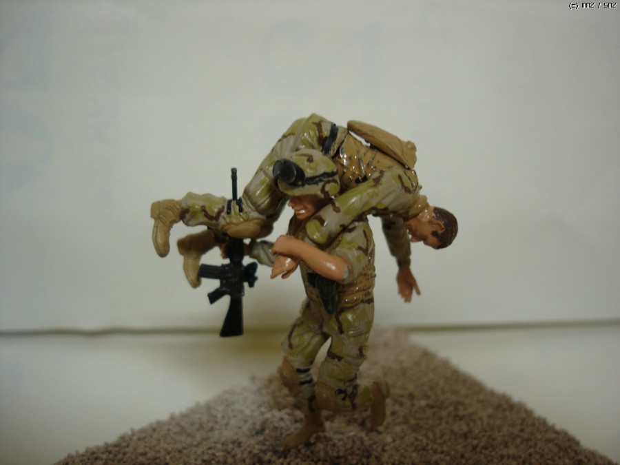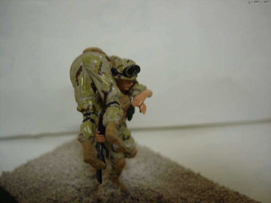 간단히 설명드리자면 미해병 desert패턴으로 제작했습니다. M16A4를 소지하고 각각 캐멀백을 착용한 것을 묘사했습니다.