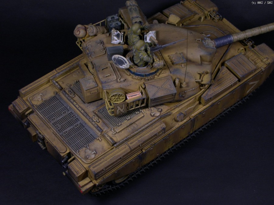 1960년대 아랍국들은 소련으로부터 신예전차인 T-62를 구입하게됩니다, 적국이스라엘은 그당시 셔먼.센츄리온등등 구형전차의 개량에 한계를느끼고있을 즈음 영국으로부터 최신예 전차인치프틴을제공하려는좋은제안을 받게된후 얼마되지않아 치프틴2대가 비밀리에 이스라엘땅을밟으며 높은기온,모래폭풍,추위등등의 철저한 테스트를받게됩니다. 약 1년간의 세월이흘렀을까? 이사실이 아랍국가들의 귀에들어가 그들의강력한반발로인해 최신예전차 치프틴의 수입.제작계획은 좌절되어버리고 맙니다...(후에 메르카바전차가 개발되면서 오히려 전화위복 [轉禍爲福]이되었죠) 이러했던 역사적사실을근거로 혹 신형치프틴전차가 채용되어 이스라엘의 주력전차되었다면 어떠한모습을했을까 하는생각에 타미야키트를 사용하여 재미나게 제작해보았습니다~^^