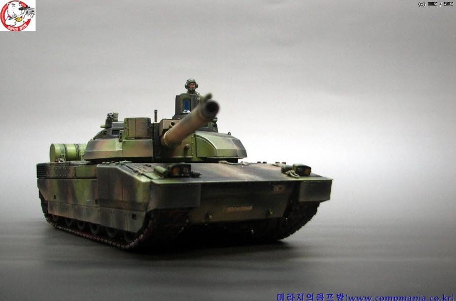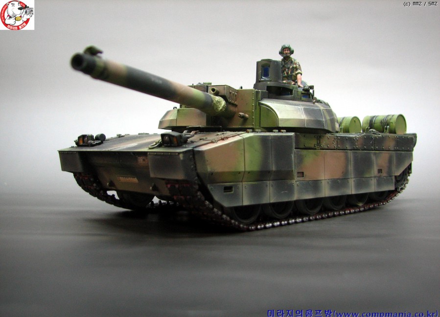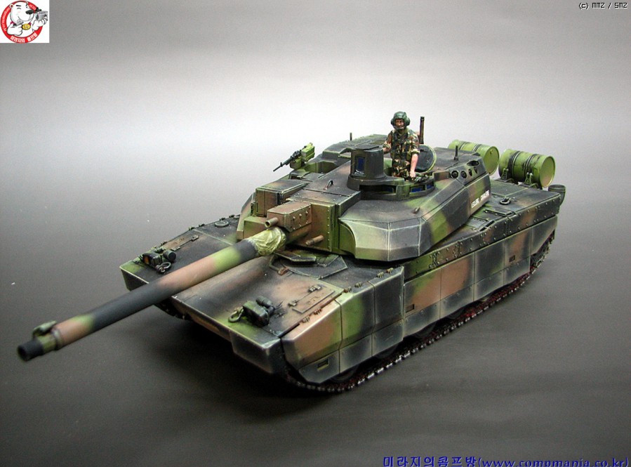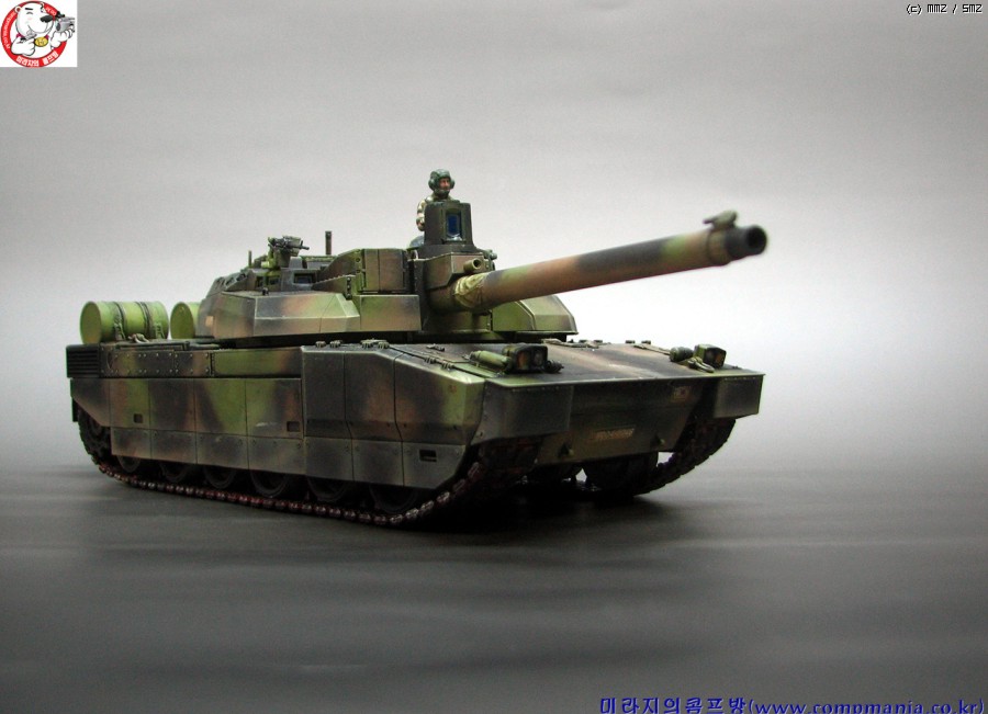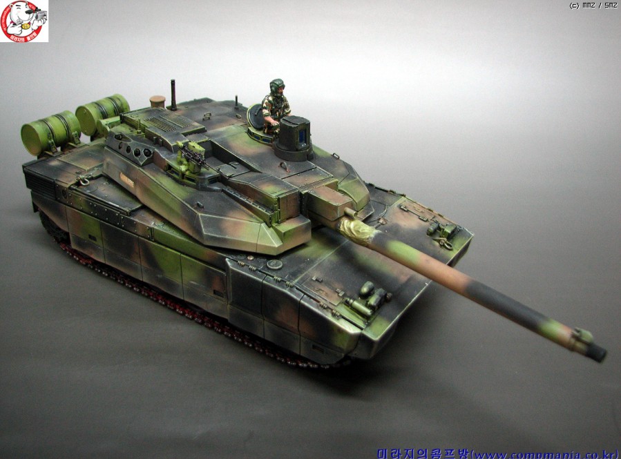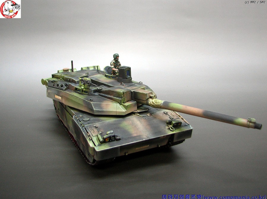 55구경장의 긴 포신과 독특한 디자인의 설계가 매력적인 전차로 현용전차중 디자인면에서는 1~2위안에 들 전차라 생각됩니다. 1위는 역시 러시아의 T-90 이죠 ^^ 스커트의 먼지 재현은 에어브러쉬를 이용 타미야 에나멜 어스와 버프로 여러번 걸쳐 그려준 것입니다. 자언스러운 먼지 재현에 중점을 두었는데 만족스럽게 잘 재현이 된것 같네요..