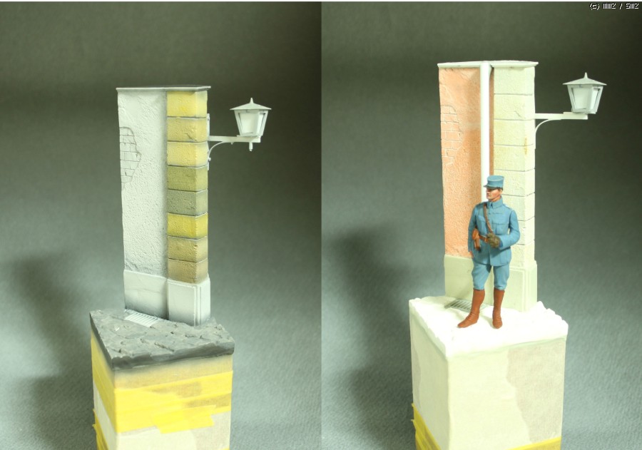 바닥은 석고몰드로 만들고, 건물 코너컷은 시바툴과 에폭시로 조형하였습니다.