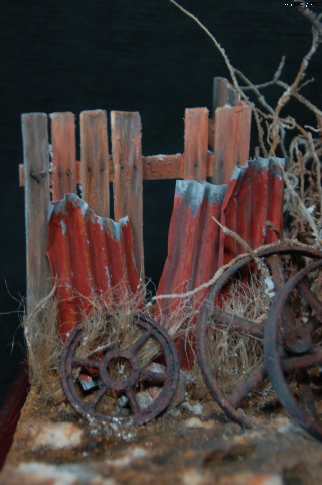 인형의 얼굴은 유화, 복장은 바예호아크릴, 지면은 화구용 아크릴로 칠했습니다. 눈이 녹아 질퍽한느낄을 내봤습니다. 젖은 땅은 유광클리어를 덕지덕지 묻혀서 표현했습니다.