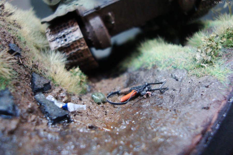 베이스는 처음 만들어서 좀 고생좀 했습니다. 또 실차 사진 처럼 너무 깊이 파묻으면 그대로 묻어 버릴거 같아서 적당히 기울이고 고랑을 팠습니다.