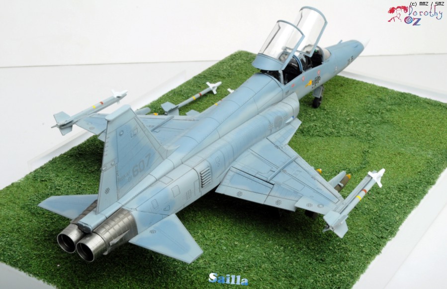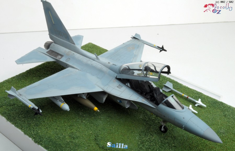 전체적으로, 오더에 따라 무장을 줄줄이 달았으며, 개방형 캐노피를 채택, 넘버링은 장교분께서 타셨던 기체와 앞으로 타게되실 기체의 넘버를 맞추어 붙였습니다. 가벼운 워싱겸 먹선작업을 하여 최대한 깔끔하게 끝내었습니다.