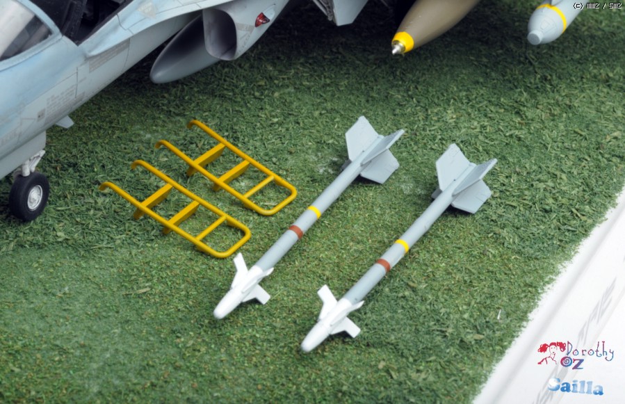 하세가와 무장이 오래된 금형이라 그래서인지 틈새와 단차가 있습니다. 공대지 무장의 노란띠 데칼은 황변이 심하여 스텐실하였습니다.