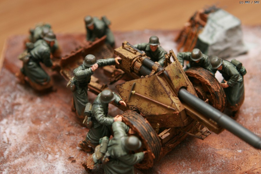 안녕하세요. 김성우입니다. AFV클럽의 88mm 대전차포입니다. 인형은 이 키트에 맞춰 발매된 하비보스의 포병세트를 작은 베이스에 올려 봤습니다. 키트를 분양 해 주신 분이 눈이 살짝 온 진창으로 만들어 줄것을 부탁하여 최대한 컨셉을 맞춰 보도록 했습니다만, 더이상은 실력의 한계로 더이상 표현 하지 못했네요... 감사합니다.