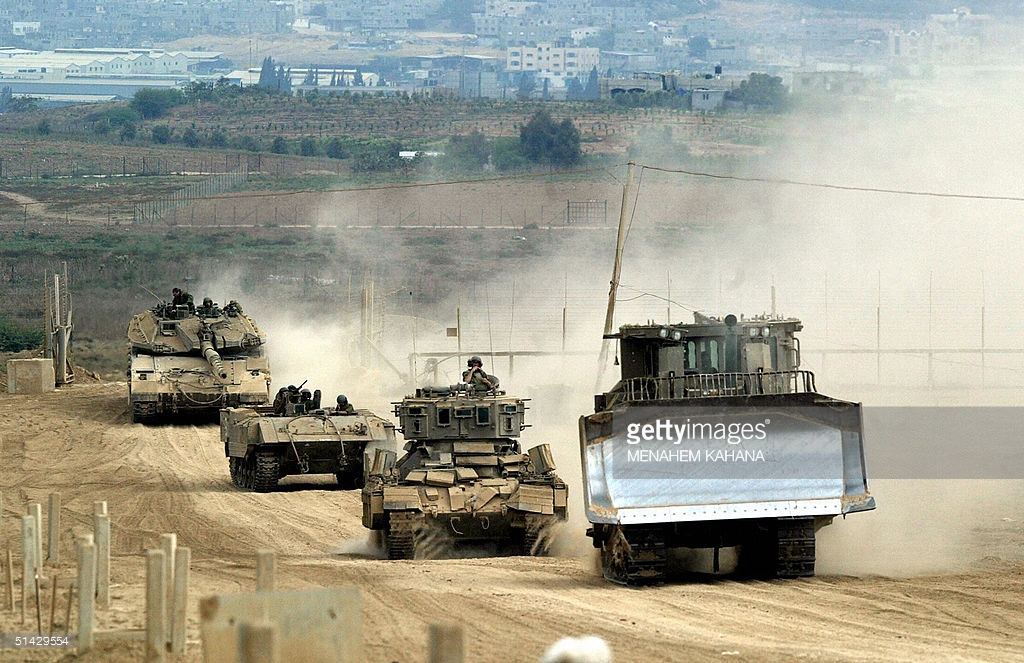 NAGMACHON의 해치를 열려는 시위자를 저격하려는 IDF 저격수. 그 손에 들려진 바렛저격총