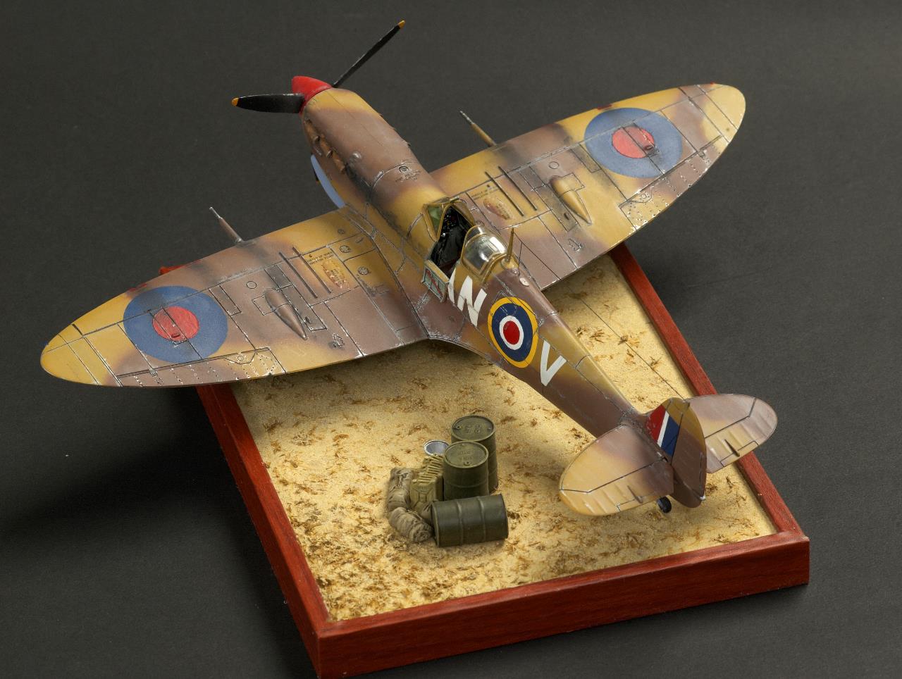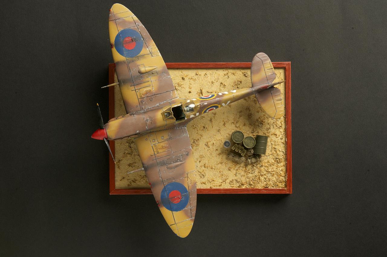안녕하세요. 타미야 스프트파이어 북아프리카 버전입니다. 공기흡입구가 사막형인게 특징입니다. 타미야 아크릴 사용했고 너무 구입한지 오래되어 데칼이 다 갈라졌습니다. 별매데칼을 사용했고 국적마크등은 스탠실기법으로 칠했습니다. 베이스는 사진액자에 타미야 디오라마텍스처 라이트샌드 로 지면 표현하고 타미야 그라스 이펙트 카키로 마른풀 표현했습니다. 장비품은 타미야 1/48 제리캔세트중 일부를 사용했습니다.