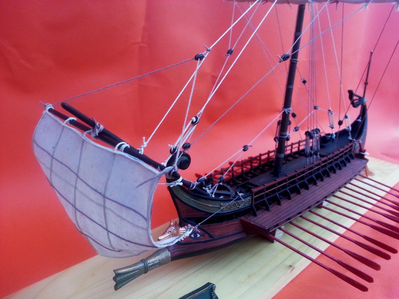원래 아카데미 제품은 1/250스케일로 나와 있는데 이 스케일로 하면 노의 크기나 각종 삭구의 크기가 좀 어색한 것 같아서 얼마전 다른회원님이 1/72스케일의 병사들을 태운것이 자연스러웠던 것을 떠올려 저 역시 1/72스케일이란 설정으로 만들어습니다.