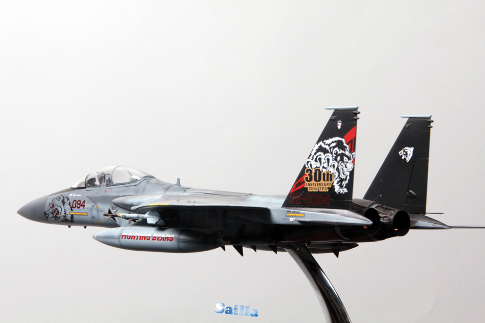 아카데미 1/48 F-15E 킷을 베이스로 모노키오 별매 데칼을 사용했습니다. 검은색 수직미익은 작례가 없더군요.