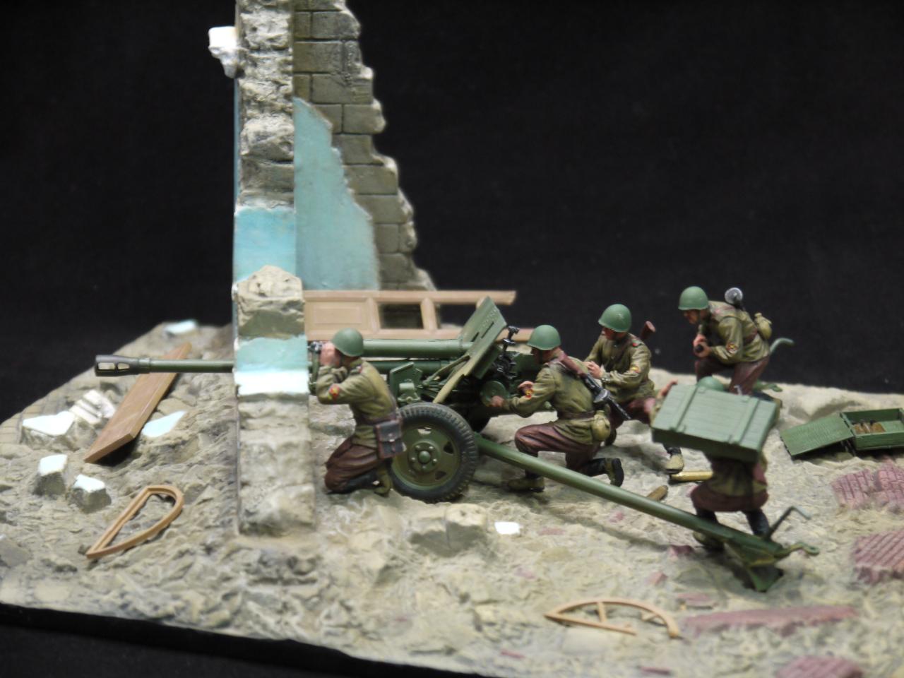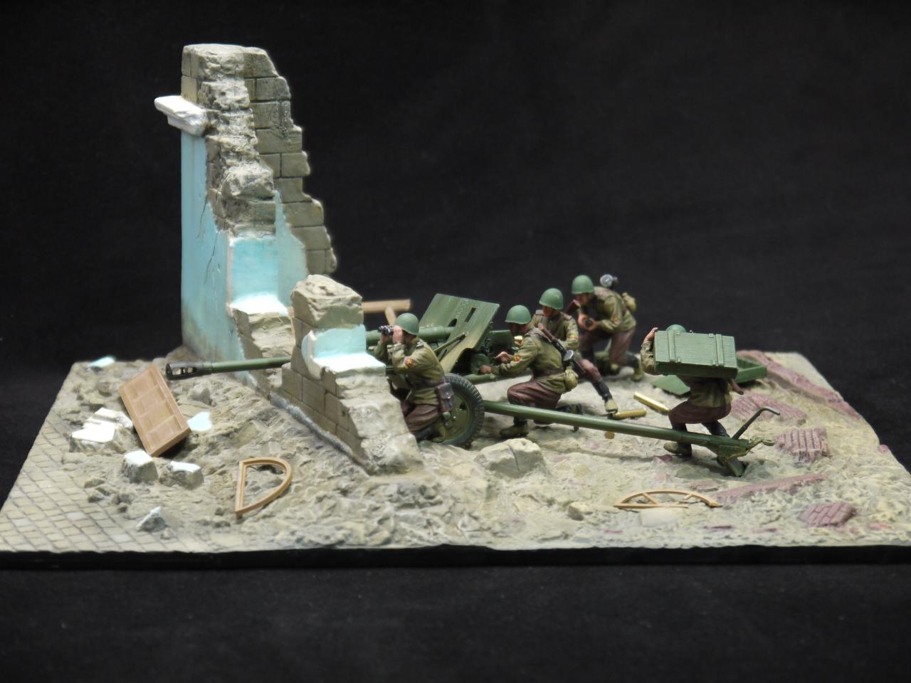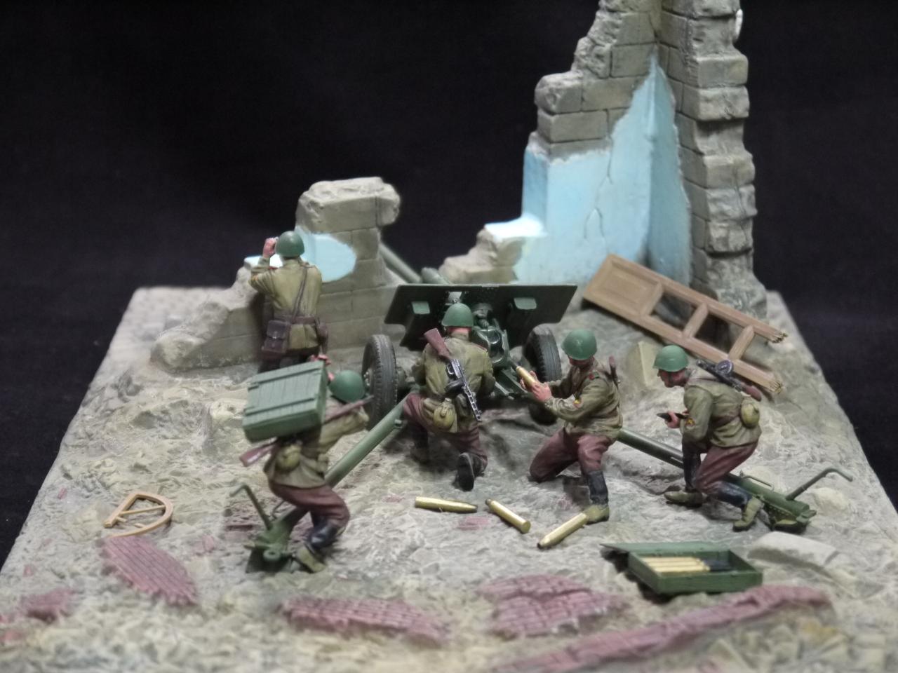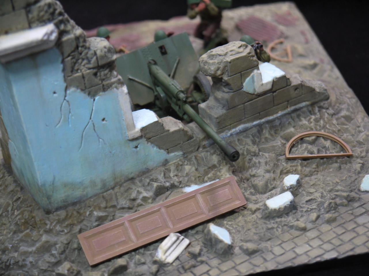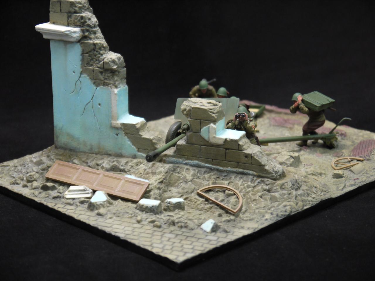 제품은 지면과 부서진 건물 견인포와 포병5명으로 구성되있습니다.