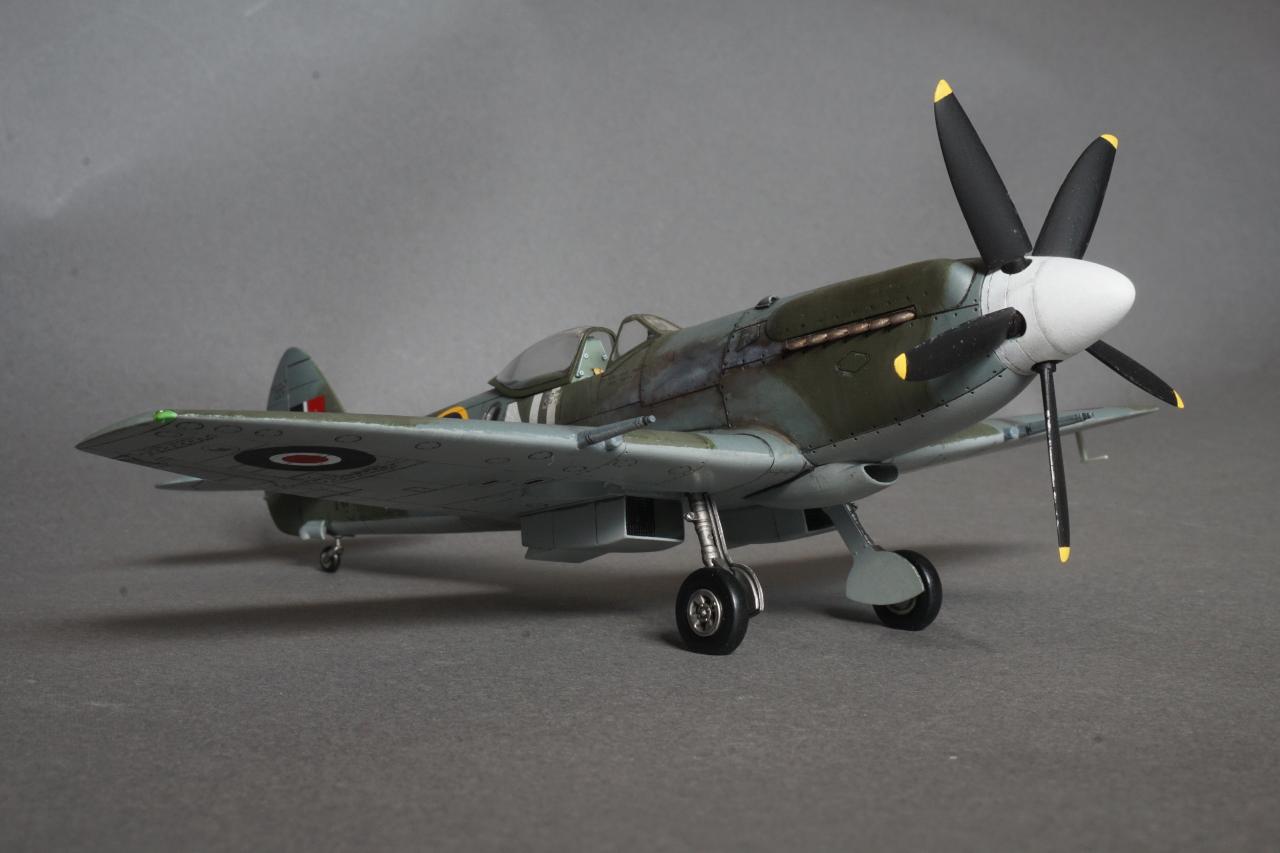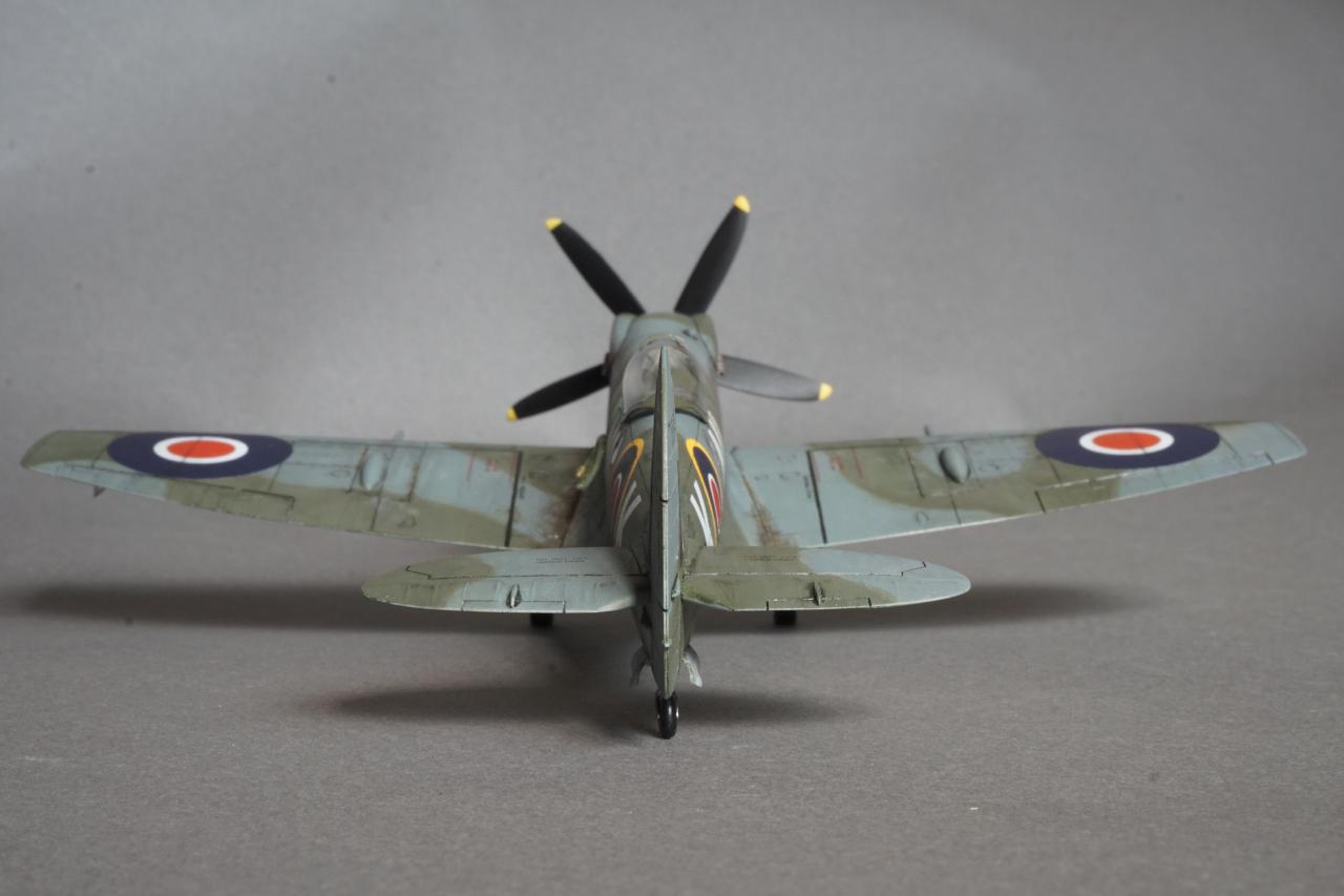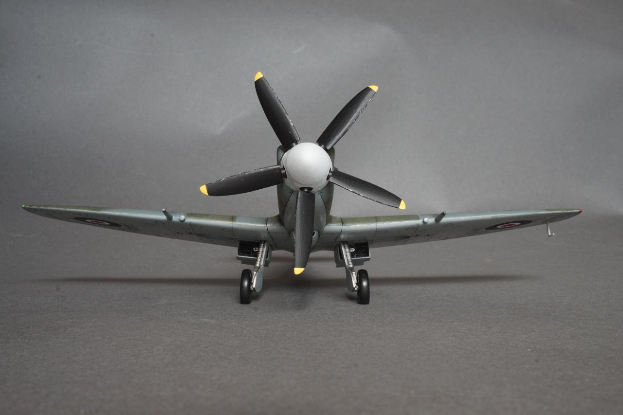 특징으로는 사진 정찰을 할 수 있는 전투기로 동체 후방에 카메라 창이 있고 저고도 작전에 최적화하기 위한 끝단이 짧은 날개로 셋팅되어 있습니다. 당시 많은 스핏파이어가 스피너와 기체 식별문자를 스카이로 칠한 것과는 달리 흰색이며 기체 사진을 보면 동체 후부에 띠 부분을 덧칠한 것 같은 자국도 있는데 데칼을 붙이고 나서 발견하는 바람에 넘어갔습니다. 그리고 이유는 알 수 없지만 그리폰 엔진으로 넘어오면서 프로펠러 회전방향이 반시계방향으로 멀린 엔진과는 반대로 되었습니다. 당시 조종사들이 어떻게 받아들였는지 궁금지는 부분입니다.