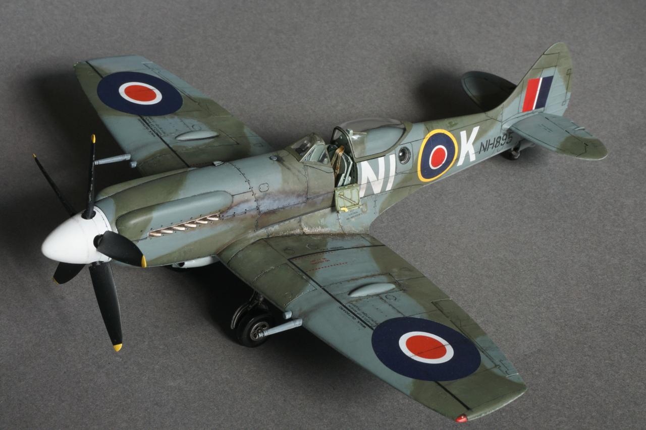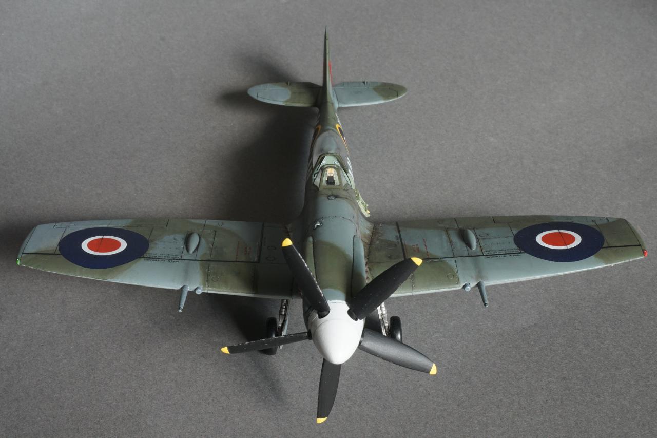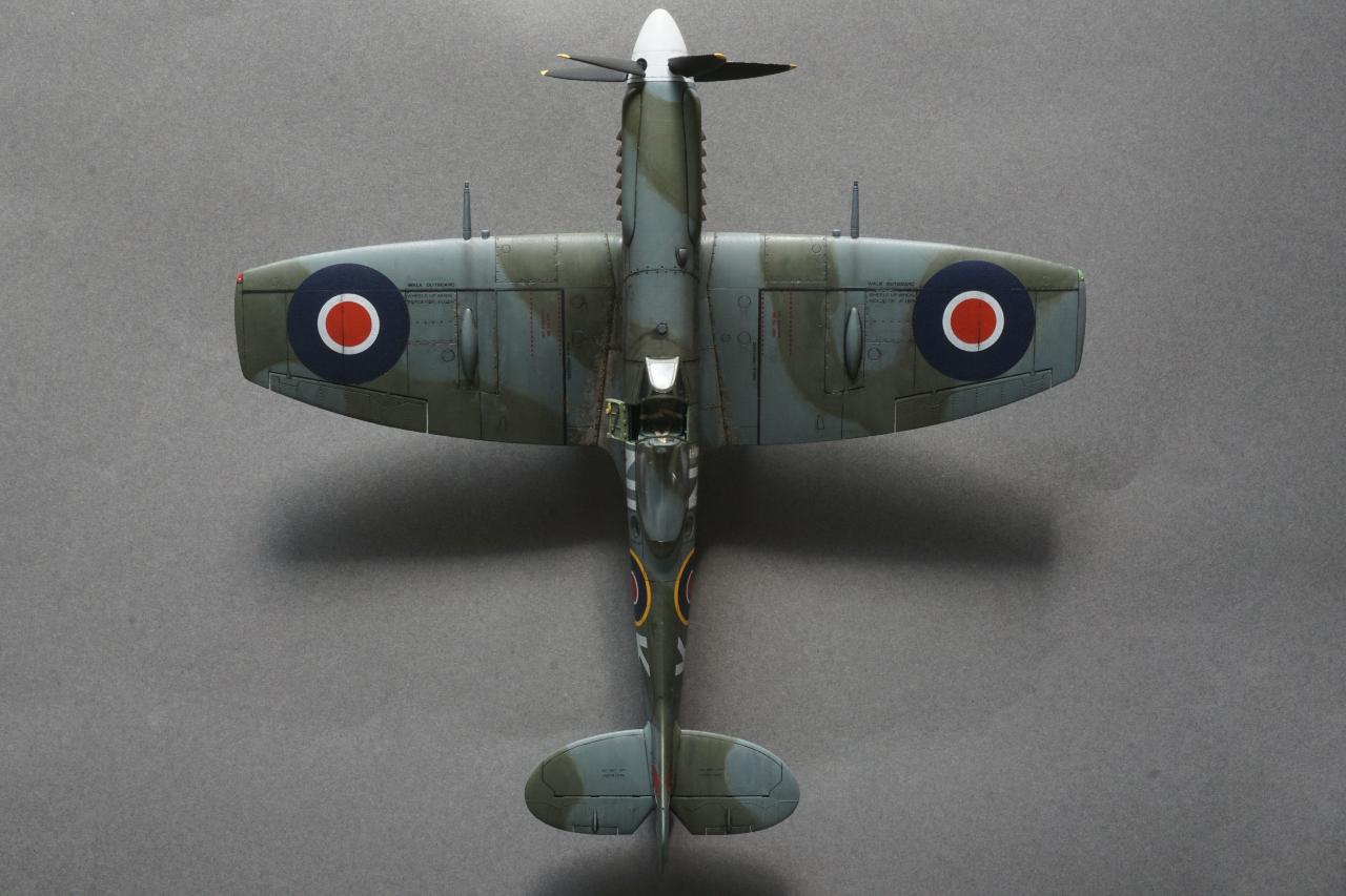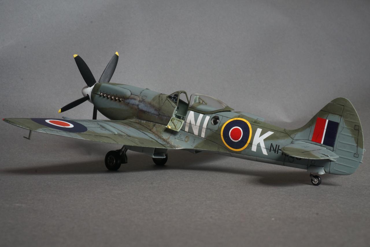 특징으로는 사진 정찰을 할 수 있는 전투기로 동체 후방에 카메라 창이 있고 저고도 작전에 최적화하기 위한 끝단이 짧은 날개로 셋팅되어 있습니다. 당시 많은 스핏파이어가 스피너와 기체 식별문자를 스카이로 칠한 것과는 달리 흰색이며 기체 사진을 보면 동체 후부에 띠 부분을 덧칠한 것 같은 자국도 있는데 데칼을 붙이고 나서 발견하는 바람에 넘어갔습니다. 그리고 이유는 알 수 없지만 그리폰 엔진으로 넘어오면서 프로펠러 회전방향이 반시계방향으로 멀린 엔진과는 반대로 되었습니다. 당시 조종사들이 어떻게 받아들였는지 궁금지는 부분입니다.
