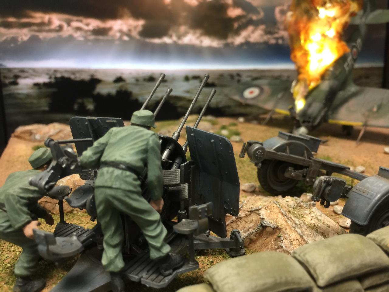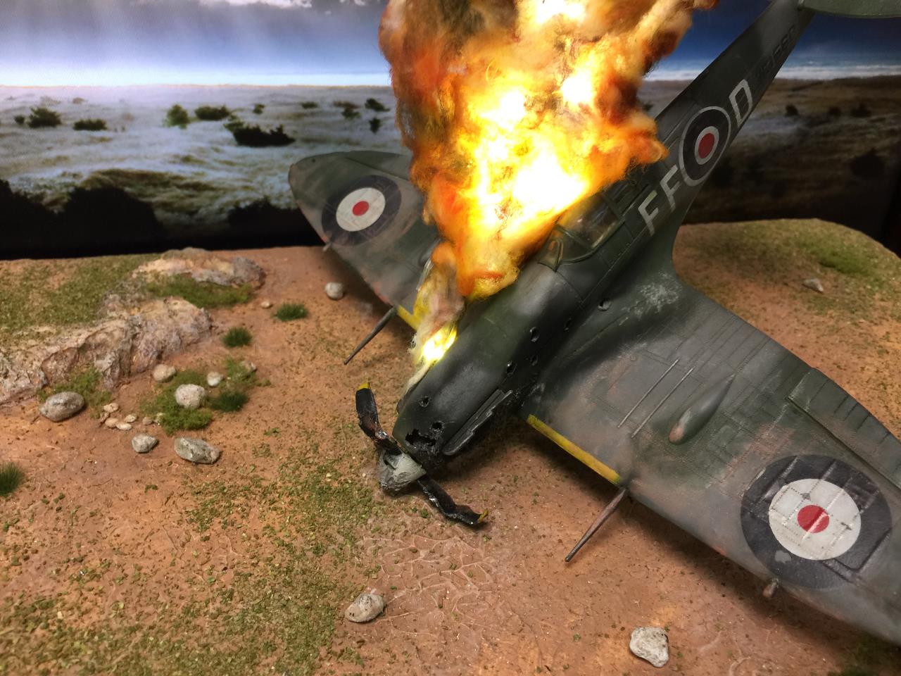 안녕하세요? 매번 비슷한 패턴이지만, 이번에는 독일군20밀리 대공기관포에 의해 피격된 영국공군 스피트파이어전투기가 불타는 모습을 표현해 봤습니다. 재밌게 봐주시면 고맙겠습니다~^^